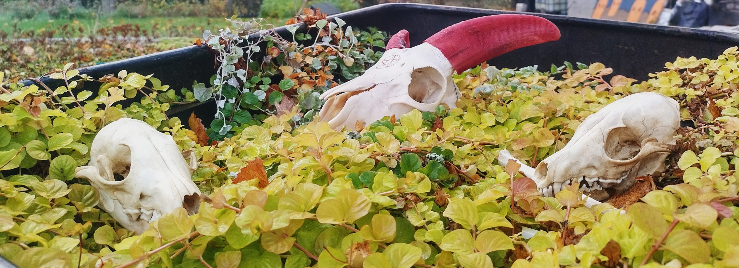 Tuotantokanin kalloista valmistettu valaisin / Lamp made with rabbit skulls